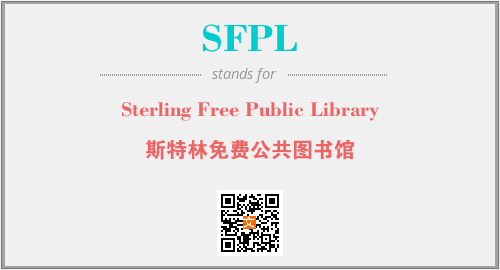 以上为Sterling Free Public Library英文缩略词SFPL的中文解释,以及该英文缩写在英语的流行度、分类和应用领域方面的信息。