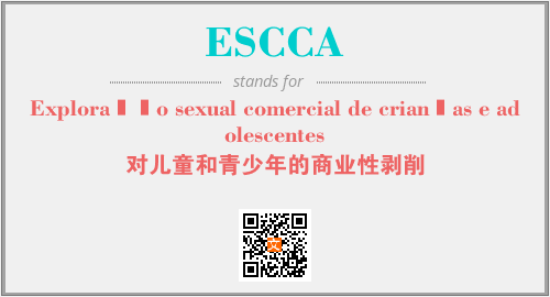上述内容是“Exploração sexual comercial de crianças e adolescentes”作为“ESCCA”的缩写,解释为“对儿童和青少年的商业性剥削”时的信息,以及英文缩略词ESCCA所代表的英文单词,其对应的中文拼音、详细解释以及在英文中的流行度和相关分类、应用领域及应用示例等。
