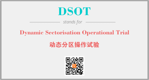 英文缩略词“DSOT”经常作为“Dynamic Sectorisation Operational Trial”的英文缩写来使用,中文表示:“动态分区操作试验”。本文将详细介绍英文缩写词DSOT所代表英文单词,其对应的中文拼音、详细解释以及在英语中的流行度。此外,还有关于缩略词DSOT的分类、应用领域及相关应用示例等。