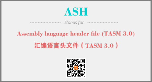 英文缩略词“ASH”经常作为“Assembly language header file (TASM 3.0)”的英文缩写来使用,中文表示:“汇编语言头文件(TASM 3.0)”。本文将详细介绍英文缩写词ASH所代表英文单词,其对应的中文拼音、详细解释以及在英语中的流行度。此外,还有关于缩略词ASH的分类、应用领域及相关应用示例等。