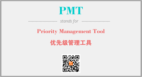 英文缩略词“PMT”经常作为“Priority Management Tool”的英文缩写来使用,中文表示:“优先级管理工具”。本文将详细介绍英文缩写词PMT所代表英文单词,其对应的中文拼音、详细解释以及在英语中的流行度。此外,还有关于缩略词PMT的分类、应用领域及相关应用示例等。