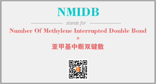 上述内容是“Number Of Methylene Interrupted Double Bonds”作为“NMIDB”的缩写,解释为“亚甲基中断双键数”时的信息,以及英文缩略词NMIDB所代表的英文单词,其对应的中文拼音、详细解释以及在英文中的流行度和相关分类、应用领域及应用示例等。