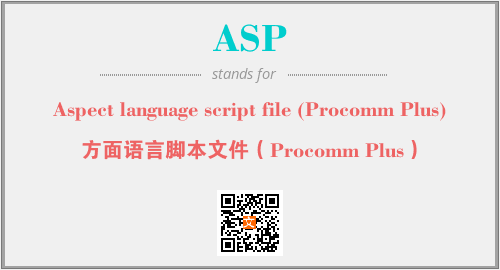 英文缩略词“ASP”经常作为“Aspect language script file (Procomm Plus)”的英文缩写来使用,中文表示:“方面语言脚本文件(Procomm Plus)”。本文将详细介绍英文缩写词ASP所代表英文单词,其对应的中文拼音、详细解释以及在英语中的流行度。此外,还有关于缩略词ASP的分类、应用领域及相关应用示例等。