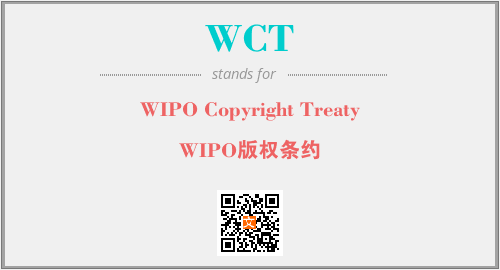 上述内容是“WIPO Copyright Treaty”作为“WCT”的缩写,解释为“WIPO版权条约”时的信息,以及英文缩略词WCT所代表的英文单词,其对应的中文拼音、详细解释以及在英文中的流行度和相关分类、应用领域及应用示例等。