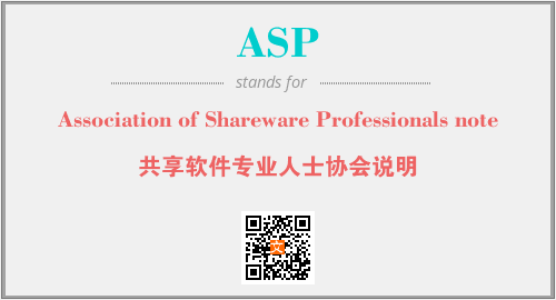 英文缩略词“ASP”经常作为“Association of Shareware Professionals note”的英文缩写来使用,中文表示:“共享软件专业人士协会说明”。本文将详细介绍英文缩写词ASP所代表英文单词,其对应的中文拼音、详细解释以及在英语中的流行度。此外,还有关于缩略词ASP的分类、应用领域及相关应用示例等。