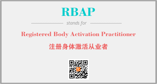 上述内容是“Registered Body Activation Practitioner”作为“RBAP”的缩写,解释为“注册身体激活从业者”时的信息,以及英文缩略词RBAP所代表的英文单词,其对应的中文拼音、详细解释以及在英文中的流行度和相关分类、应用领域及应用示例等。