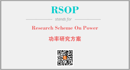 上述内容是“Research Scheme On Power”作为“RSOP”的缩写,解释为“功率研究方案”时的信息,以及英文缩略词RSOP所代表的英文单词,其对应的中文拼音、详细解释以及在英文中的流行度和相关分类、应用领域及应用示例等。