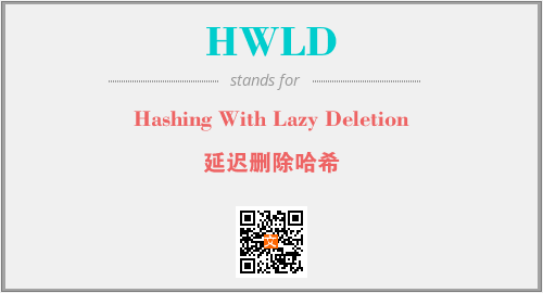 上述内容是“Hashing With Lazy Deletion”作为“HWLD”的缩写,解释为“延迟删除哈希”时的信息,以及英文缩略词HWLD所代表的英文单词,其对应的中文拼音、详细解释以及在英文中的流行度和相关分类、应用领域及应用示例等。