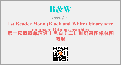 以上为1st Reader Mono (Black and White) binary screen image Bitmap graphics英文缩略词B&W的中文解释,以及该英文缩写在英语的流行度、分类和应用领域方面的信息。