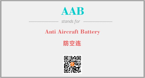 英文缩略词“AAB”经常作为“Anti Aircraft Battery”的英文缩写来使用,中文表示:“防空连”。本文将详细介绍英文缩写词AAB所代表英文单词,其对应的中文拼音、详细解释以及在英语中的流行度。此外,还有关于缩略词AAB的分类、应用领域及相关应用示例等。
