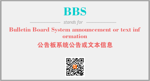 英文缩略词“BBS”经常作为“Bulletin Board System announcement or text information”的英文缩写来使用,中文表示:“公告板系统公告或文本信息”。本文将详细介绍英文缩写词BBS所代表英文单词,其对应的中文拼音、详细解释以及在英语中的流行度。此外,还有关于缩略词BBS的分类、应用领域及相关应用示例等。