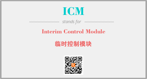 上述内容是“Interim Control Module”作为“ICM”的缩写,解释为“临时控制模块”时的信息,以及英文缩略词ICM所代表的英文单词,其对应的中文拼音、详细解释以及在英文中的流行度和相关分类、应用领域及应用示例等。