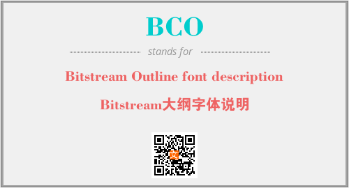 英文缩略词“BCO”经常作为“Bitstream Outline font description”的英文缩写来使用,中文表示:“Bitstream大纲字体说明”。本文将详细介绍英文缩写词BCO所代表英文单词,其对应的中文拼音、详细解释以及在英语中的流行度。此外,还有关于缩略词BCO的分类、应用领域及相关应用示例等。