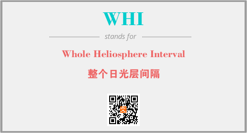 上述内容是“Whole Heliosphere Interval”作为“WHI”的缩写,解释为“整个日光层间隔”时的信息,以及英文缩略词WHI所代表的英文单词,其对应的中文拼音、详细解释以及在英文中的流行度和相关分类、应用领域及应用示例等。