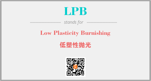 英文缩略词“LPB”经常作为“Low Plasticity Burnishing”的英文缩写来使用,中文表示:“低塑性抛光”。本文将详细介绍英文缩写词LPB所代表英文单词,其对应的中文拼音、详细解释以及在英语中的流行度。此外,还有关于缩略词LPB的分类、应用领域及相关应用示例等。