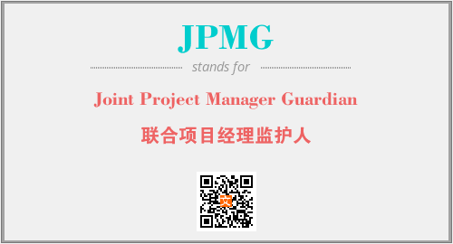 上述内容是“Joint Project Manager Guardian”作为“JPMG”的缩写,解释为“联合项目经理监护人”时的信息,以及英文缩略词JPMG所代表的英文单词,其对应的中文拼音、详细解释以及在英文中的流行度和相关分类、应用领域及应用示例等。
