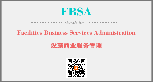 英文缩略词“FBSA”经常作为“Facilities Business Services Administration”的英文缩写来使用,中文表示:“设施商业服务管理”。本文将详细介绍英文缩写词FBSA所代表英文单词,其对应的中文拼音、详细解释以及在英语中的流行度。此外,还有关于缩略词FBSA的分类、应用领域及相关应用示例等。