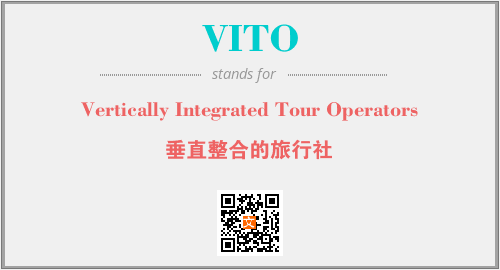 上述内容是“Vertically Integrated Tour Operators”作为“VITO”的缩写,解释为“垂直整合的旅行社”时的信息,以及英文缩略词VITO所代表的英文单词,其对应的中文拼音、详细解释以及在英文中的流行度和相关分类、应用领域及应用示例等。