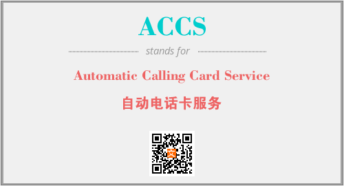 以上为Automatic Calling Card Service英文缩略词ACCS的中文解释,以及该英文缩写在英语的流行度、分类和应用领域方面的信息。