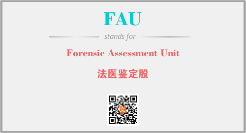 上述内容是“Forensic Assessment Unit”作为“FAU”的缩写,解释为“法医鉴定股”时的信息,以及英文缩略词FAU所代表的英文单词,其对应的中文拼音、详细解释以及在英文中的流行度和相关分类、应用领域及应用示例等。