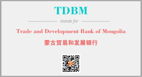 英文缩略词“TDBM”经常作为“Trade and Development Bank of Mongolia”的英文缩写来使用,中文表示:“蒙古贸易和发展银行”。本文将详细介绍英文缩写词TDBM所代表英文单词,其对应的中文拼音、详细解释以及在英语中的流行度。此外,还有关于缩略词TDBM的分类、应用领域及相关应用示例等。