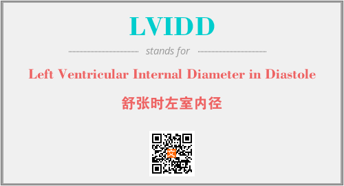 上述内容是“Left Ventricular Internal Diameter in Diastole”作为“LVIDD”的缩写,解释为“舒张时左室内径”时的信息,以及英文缩略词LVIDD所代表的英文单词,其对应的中文拼音、详细解释以及在英文中的流行度和相关分类、应用领域及应用示例等。