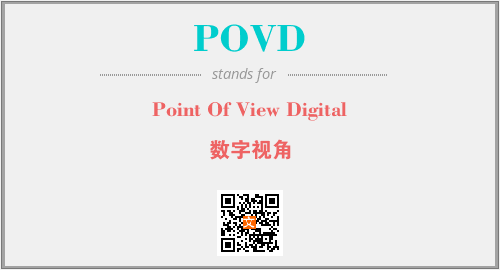 英文缩略词“POVD”经常作为“Point Of View Digital”的英文缩写来使用,中文表示:“数字视角”。本文将详细介绍英文缩写词POVD所代表英文单词,其对应的中文拼音、详细解释以及在英语中的流行度。此外,还有关于缩略词POVD的分类、应用领域及相关应用示例等。