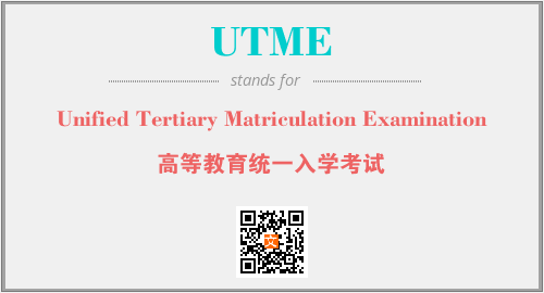 英文缩略词“UTME”经常作为“Unified Tertiary Matriculation Examination”的英文缩写来使用,中文表示:“高等教育统一入学考试”。本文将详细介绍英文缩写词UTME所代表英文单词,其对应的中文拼音、详细解释以及在英语中的流行度。此外,还有关于缩略词UTME的分类、应用领域及相关应用示例等。