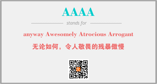 上述内容是“anyway Awesomely Atrocious Arrogant”作为“AAAA”的缩写,解释为“无论如何,令人敬畏的残暴傲慢”时的信息,以及英文缩略词AAAA所代表的英文单词,其对应的中文拼音、详细解释以及在英文中的流行度和相关分类、应用领域及应用示例等。