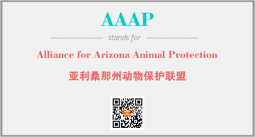 上述内容是“Alliance for Arizona Animal Protection”作为“AAAP”的缩写,解释为“亚利桑那州动物保护联盟”时的信息,以及英文缩略词AAAP所代表的英文单词,其对应的中文拼音、详细解释以及在英文中的流行度和相关分类、应用领域及应用示例等。