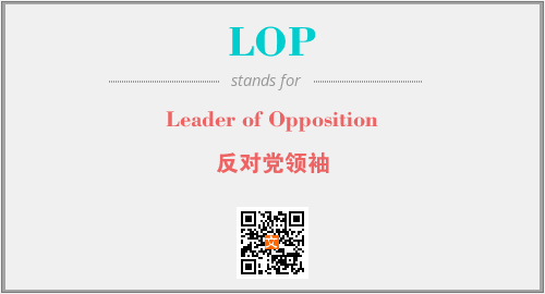 英文缩略词“LOP”经常作为“Leader of Opposition”的英文缩写来使用,中文表示:“反对党领袖”。本文将详细介绍英文缩写词LOP所代表英文单词,其对应的中文拼音、详细解释以及在英语中的流行度。此外,还有关于缩略词LOP的分类、应用领域及相关应用示例等。