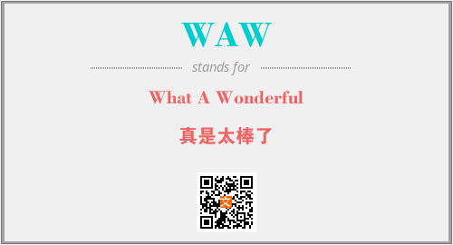 上述内容是“What A Wonderful”作为“WAW”的缩写,解释为“真是太棒了”时的信息,以及英文缩略词WAW所代表的英文单词,其对应的中文拼音、详细解释以及在英文中的流行度和相关分类、应用领域及应用示例等。