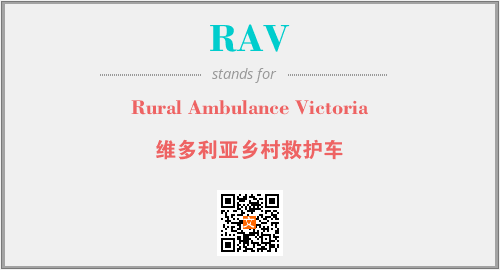 英文缩略词“RAV”经常作为“Rural Ambulance Victoria”的英文缩写来使用,中文表示:“维多利亚乡村救护车”。本文将详细介绍英文缩写词RAV所代表英文单词,其对应的中文拼音、详细解释以及在英语中的流行度。此外,还有关于缩略词RAV的分类、应用领域及相关应用示例等。