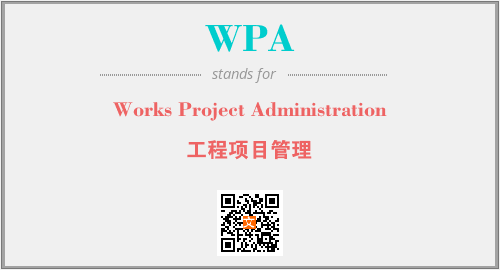 上述内容是“Works Project Administration”作为“WPA”的缩写,解释为“工程项目管理”时的信息,以及英文缩略词WPA所代表的英文单词,其对应的中文拼音、详细解释以及在英文中的流行度和相关分类、应用领域及应用示例等。