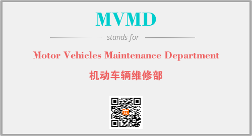 英文缩略词“MVMD”经常作为“Motor Vehicles Maintenance Department”的英文缩写来使用,中文表示:“机动车辆维修部”。本文将详细介绍英文缩写词MVMD所代表英文单词,其对应的中文拼音、详细解释以及在英语中的流行度。此外,还有关于缩略词MVMD的分类、应用领域及相关应用示例等。