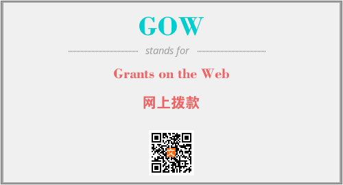 英文缩略词“GOW”经常作为“Grants on the Web”的英文缩写来使用,中文表示:“网上拨款”。本文将详细介绍英文缩写词GOW所代表英文单词,其对应的中文拼音、详细解释以及在英语中的流行度。此外,还有关于缩略词GOW的分类、应用领域及相关应用示例等。