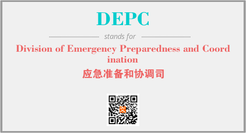 上述内容是“Division of Emergency Preparedness and Coordination”作为“DEPC”的缩写,解释为“应急准备和协调司”时的信息,以及英文缩略词DEPC所代表的英文单词,其对应的中文拼音、详细解释以及在英文中的流行度和相关分类、应用领域及应用示例等。