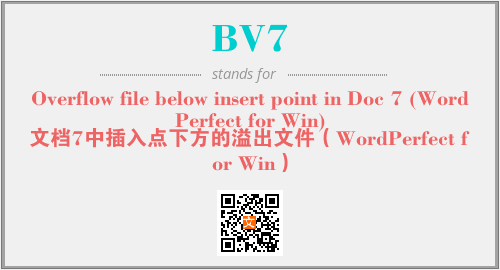 上述内容是“Overflow file below insert point in Doc 7 (WordPerfect for Win)”作为“BV7”的缩写,解释为“文档7中插入点下方的溢出文件(WordPerfect for Win)”时的信息,以及英文缩略词BV7所代表的英文单词,其对应的中文拼音、详细解释以及在英文中的流行度和相关分类、应用领域及应用示例等。