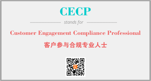 英文缩略词“CECP”经常作为“Customer Engagement Compliance Professional”的英文缩写来使用,中文表示:“客户参与合规专业人士”。本文将详细介绍英文缩写词CECP所代表英文单词,其对应的中文拼音、详细解释以及在英语中的流行度。此外,还有关于缩略词CECP的分类、应用领域及相关应用示例等。