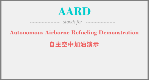 上述内容是“Autonomous Airborne Refueling Demonstration”作为“AARD”的缩写,解释为“自主空中加油演示”时的信息,以及英文缩略词AARD所代表的英文单词,其对应的中文拼音、详细解释以及在英文中的流行度和相关分类、应用领域及应用示例等。