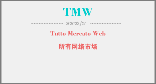 上述内容是“Tutto Mercato Web”作为“TMW”的缩写,解释为“所有网络市场”时的信息,以及英文缩略词TMW所代表的英文单词,其对应的中文拼音、详细解释以及在英文中的流行度和相关分类、应用领域及应用示例等。
