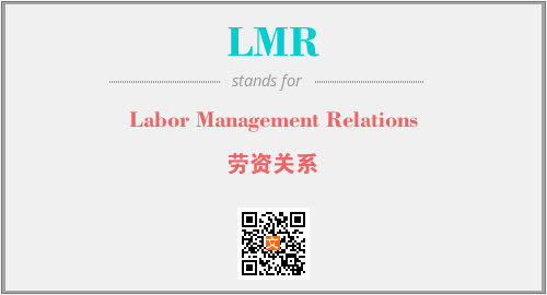 上述内容是“Labor Management Relations”作为“LMR”的缩写,解释为“劳资关系”时的信息,以及英文缩略词LMR所代表的英文单词,其对应的中文拼音、详细解释以及在英文中的流行度和相关分类、应用领域及应用示例等。