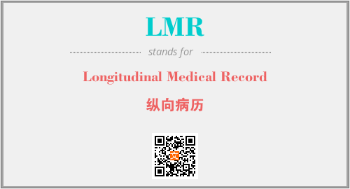 英文缩略词“LMR”经常作为“Longitudinal Medical Record”的英文缩写来使用,中文表示:“纵向病历”。本文将详细介绍英文缩写词LMR所代表英文单词,其对应的中文拼音、详细解释以及在英语中的流行度。此外,还有关于缩略词LMR的分类、应用领域及相关应用示例等。