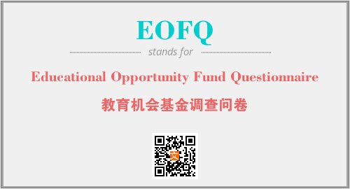 上述内容是“Educational Opportunity Fund Questionnaire”作为“EOFQ”的缩写,解释为“教育机会基金调查问卷”时的信息,以及英文缩略词EOFQ所代表的英文单词,其对应的中文拼音、详细解释以及在英文中的流行度和相关分类、应用领域及应用示例等。