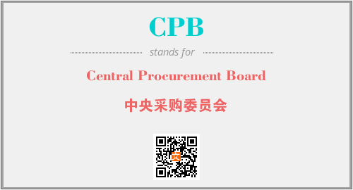 英文缩略词“CPB”经常作为“Central Procurement Board”的英文缩写来使用,中文表示:“中央采购委员会”。本文将详细介绍英文缩写词CPB所代表英文单词,其对应的中文拼音、详细解释以及在英语中的流行度。此外,还有关于缩略词CPB的分类、应用领域及相关应用示例等。