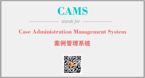 英文缩略词“CAMS”经常作为“Case Administration Management System”的英文缩写来使用,中文表示:“案例管理系统”。本文将详细介绍英文缩写词CAMS所代表英文单词,其对应的中文拼音、详细解释以及在英语中的流行度。此外,还有关于缩略词CAMS的分类、应用领域及相关应用示例等。