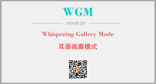 上述内容是“Whispering Gallery Mode”作为“WGM”的缩写,解释为“耳语画廊模式”时的信息,以及英文缩略词WGM所代表的英文单词,其对应的中文拼音、详细解释以及在英文中的流行度和相关分类、应用领域及应用示例等。