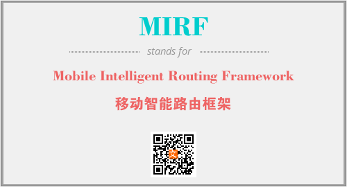 英文缩略词“MIRF”经常作为“Mobile Intelligent Routing Framework”的英文缩写来使用,中文表示:“移动智能路由框架”。本文将详细介绍英文缩写词MIRF所代表英文单词,其对应的中文拼音、详细解释以及在英语中的流行度。此外,还有关于缩略词MIRF的分类、应用领域及相关应用示例等。