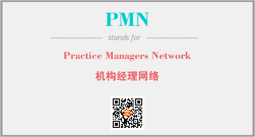 英文缩略词“PMN”经常作为“Practice Managers Network”的英文缩写来使用,中文表示:“机构经理网络”。本文将详细介绍英文缩写词PMN所代表英文单词,其对应的中文拼音、详细解释以及在英语中的流行度。此外,还有关于缩略词PMN的分类、应用领域及相关应用示例等。