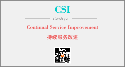 英文缩略词“CSI”经常作为“Continual Service Improvement”的英文缩写来使用,中文表示:“持续服务改进”。本文将详细介绍英文缩写词CSI所代表英文单词,其对应的中文拼音、详细解释以及在英语中的流行度。此外,还有关于缩略词CSI的分类、应用领域及相关应用示例等。